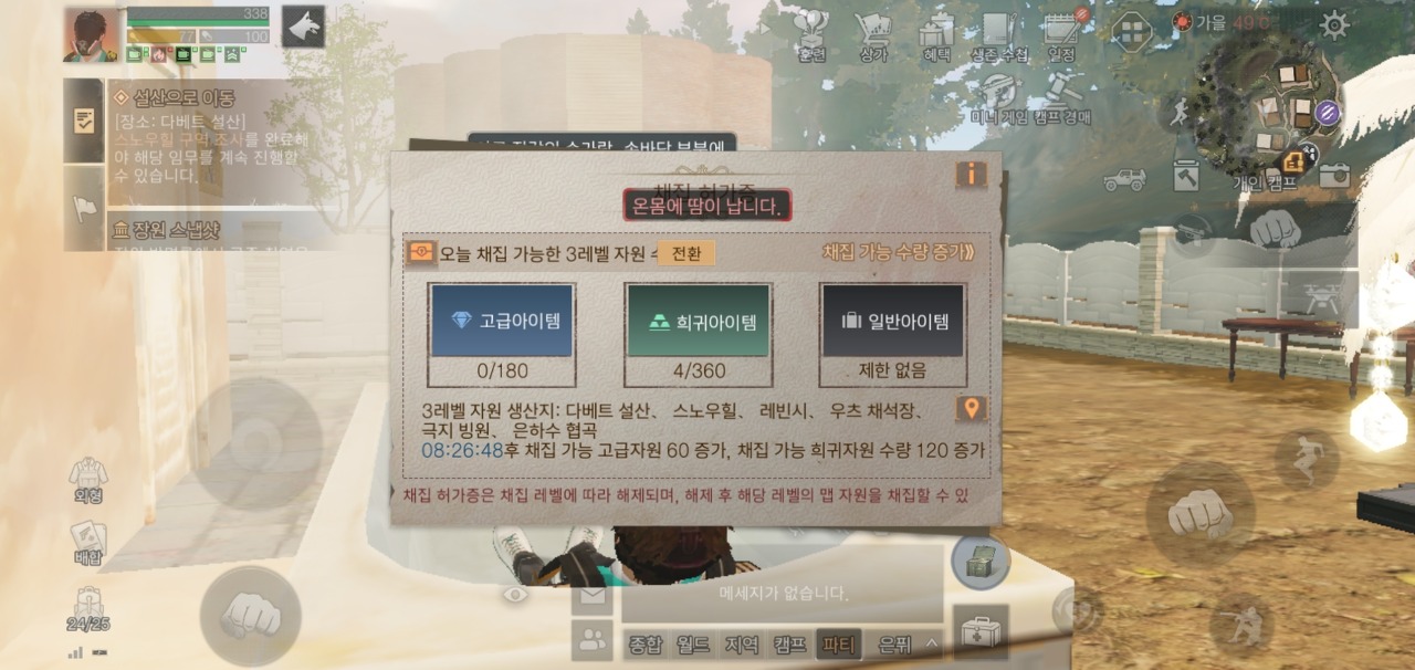 *21.02.03 전에는 레빈시가 3레벨, 여명지구가 4레벨 채집권을 썼지만 패치로 유저레벨을 따라가게 수정되었습니다.